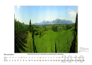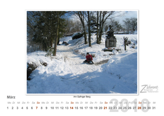 Bildkalender"Waltershofen 2010"heißt ein Monatskalender im A4-Format mit 13 Fotos von Waltershofen und dem Tuniberg. Der Kalender kann im Rathaus, im Kinder- und Jugendtreff oder bei Barbara oder Johannes Fiedler (Martackertenstr. 24a) angesehen und zum Preis von 8,50 Euro erworben werden. Der Erlös aus dem Verkauf des Kalenders kommt "Z'sämme" zugute. Hier ein Überblick des Kalenderinhaltes, wer eine genauere Voransicht möchte, kann den Kalender in Bildschirmauflösung hier im PDF-Format herunterladen (3,2 MB).