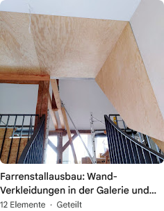 Der Aufzug ins OG ist fertig gestellt, auf der Galerie stehen nun die Arbeiten für die Decken- und Wandverkleidungen
