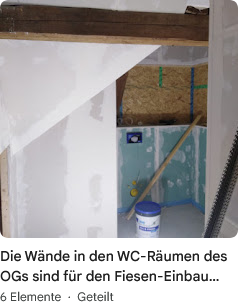 - die Wände in den WC-Räumen des Obergeschosses sind für den Fliesen-Einbau