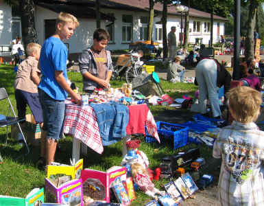 Die 30.000 Euro-Grenze geknackt!Mit dem Kindersachenmarkt am 22.09.2012 wurde eine magische Zahl überschritten: seit dem 1. Kindersachenmarkt im Jahr 1989 wurden insgesamt 30.000 € erlöst, die gänzlich in Projekte geflossen sind, die durch bürgerschaftliches Engagement in Waltershofen entstanden sind - Freizeitflächen wie Basketball-, Beachvolleyball-, Inlinersportfelder für Kinder und Jugendliche, die Rutschbahn im Schulhof…, um nur einige "große Projekte" zu nennen. Viele helfende Hände haben in der langen Zeit zu diesem Erfolg beigetragen - allen dafür hiermit ein herzliches Dankeschön! Auch dieses Mal war der Zulauf zu dem über Waltershofener Grenzen hinweg bekannten und beliebten Kindersachen- und Kinderflohmarkt sehr groß und erfolgreich: ca. € 950 konnten eingenommen werden. Durch die Hilfe fleißiger Mütter und Väter sowohl beim Auf- und Abbau, hinter der Kuchentheke und in der Küche konnte die Veranstaltung auch diesmal reibungslos ablaufen. Nochmal ein herzliches Dankeschön an alle HelferInnen - und bis zum nächsten Mal! Für die Elterninitiative Kindersachenmarkt Monika Burchgart, Barbara Großehabig, Anja Senaschy, Barbara Fiedler |