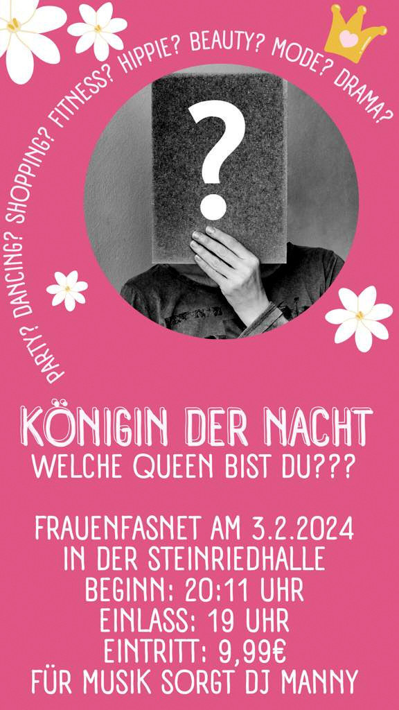 Wieberfasnet 2024 „Königin der Nacht – welche Queen bist du???”:
